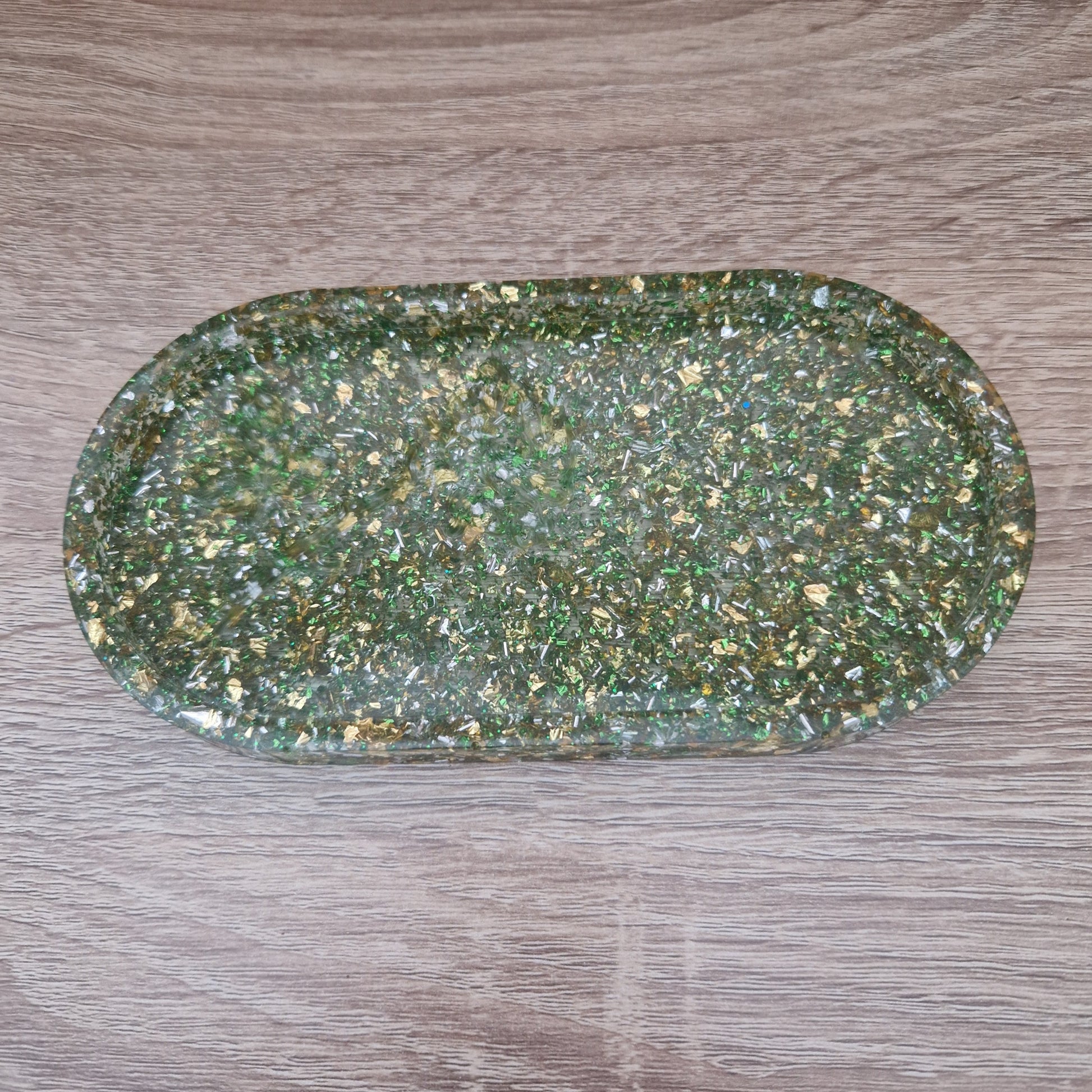 Plateau Feuille Verte Doré Argenté en Résine Epoxy