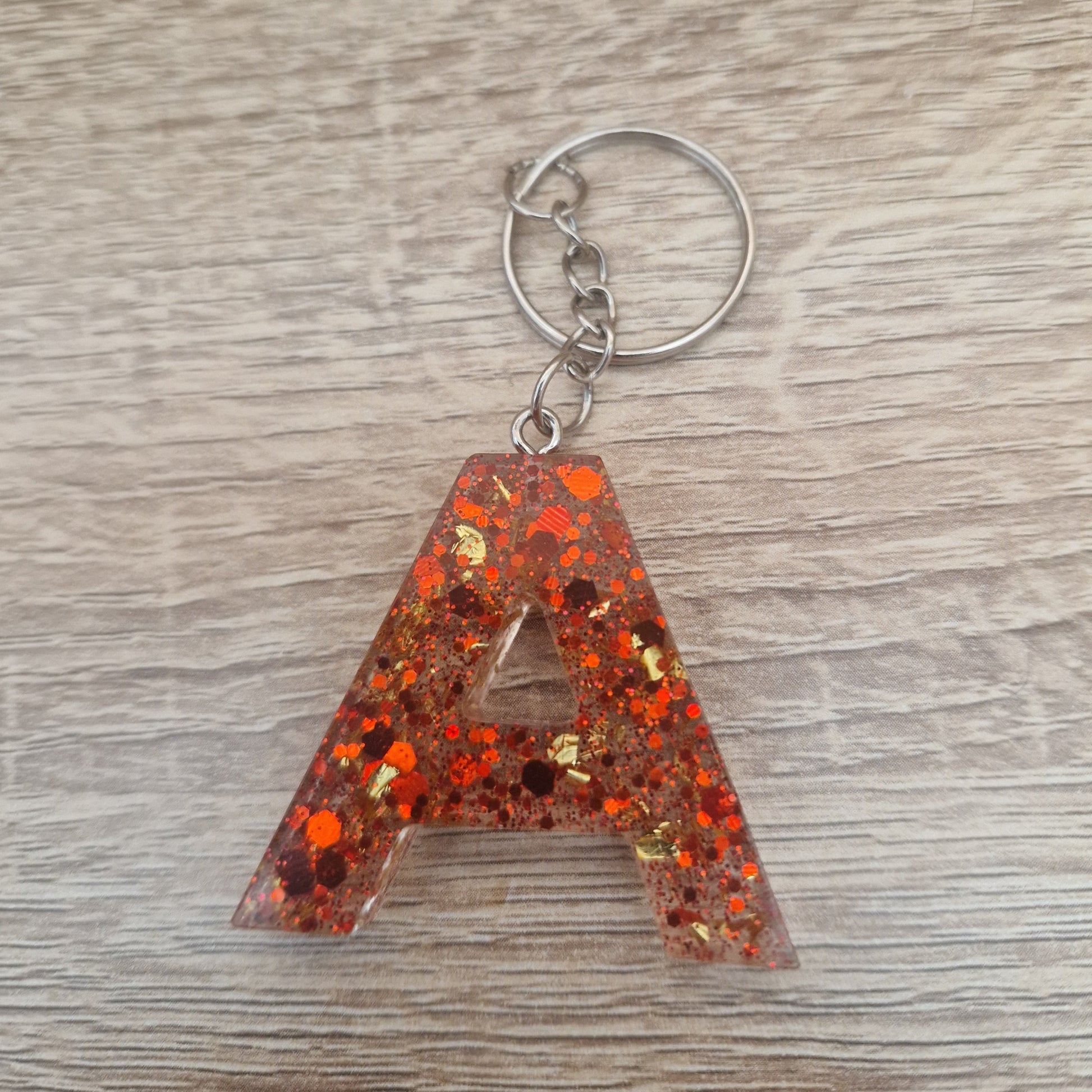 Porte clés lettres et chiffres rouge doré Résine Epoxy